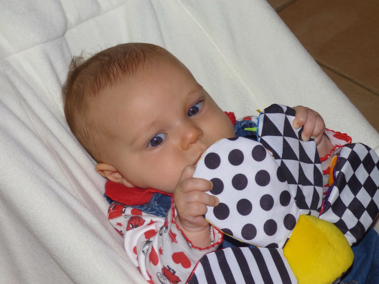Continuer à lireLucie devient plus à l’aise avec ses mains, et sait maintenant bien attraper les objets. Voyez plutôt :