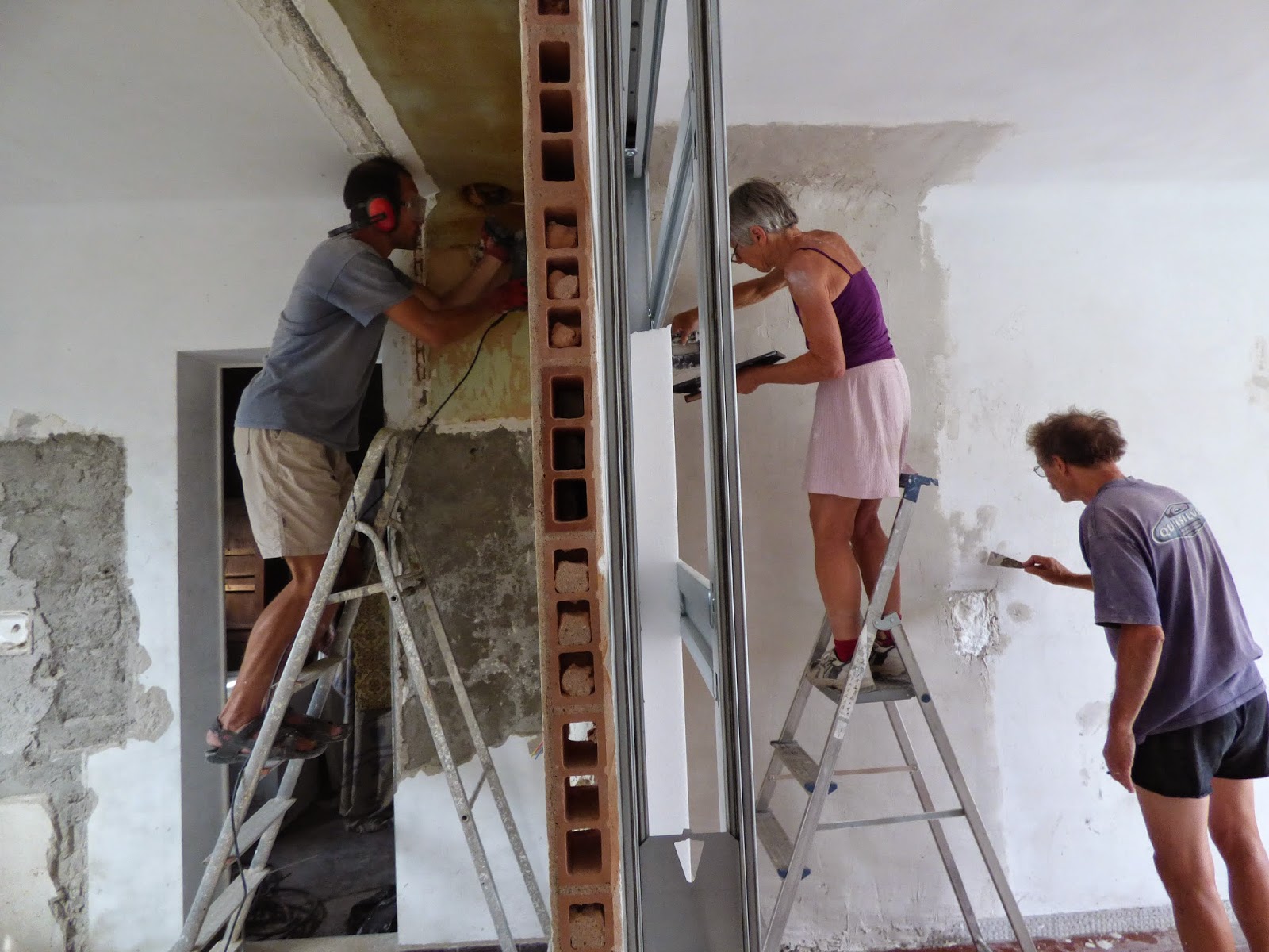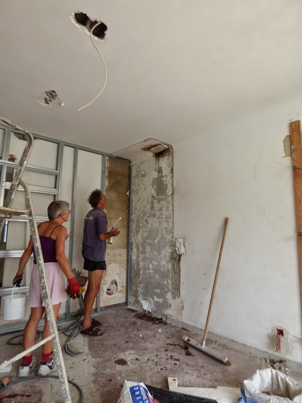 Geneviève et Eric sont venus ce week-end nous aider à faire du plâtre à plusieurs endroits, ils ont fait du beau travail !