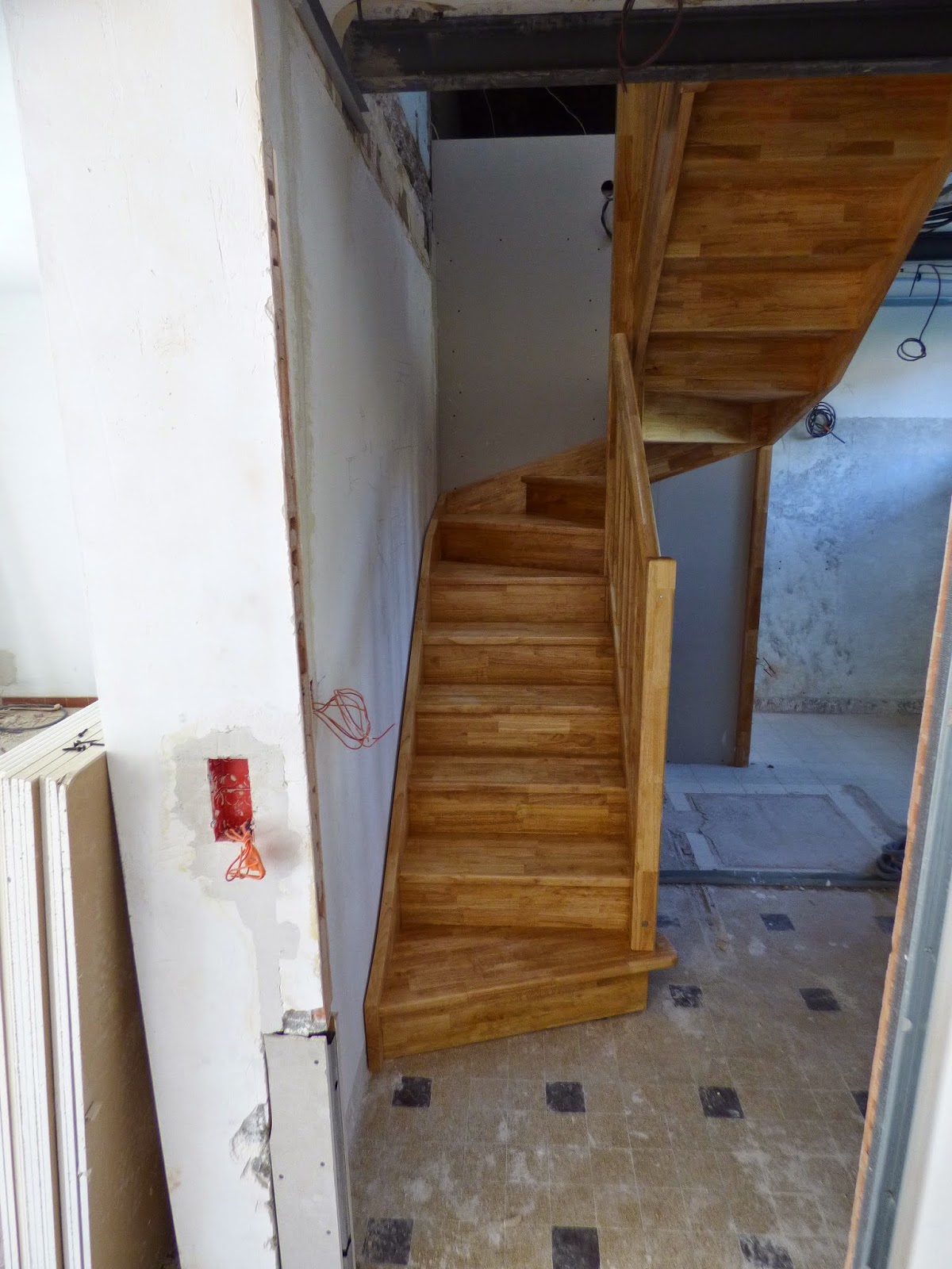 Pendant nos vacances, les travaux ont un peu avancé, avec surtout la pose de notre escalier !