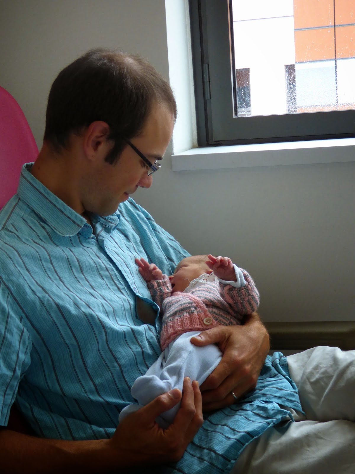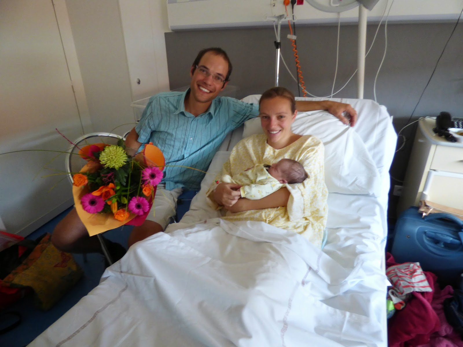 Nous sommes restés à la maternité jusqu’au lundi 1er septembre. Malgré (grâce à ?) l’accouchement surprise à Clermont-Ferrand nous avons eu de nombreuses visites, et notre séjour s’est très bien passé.