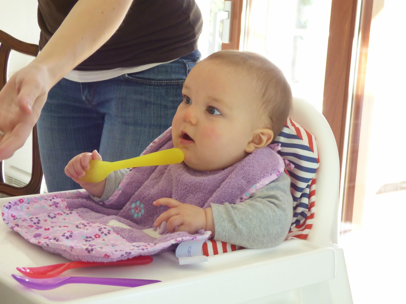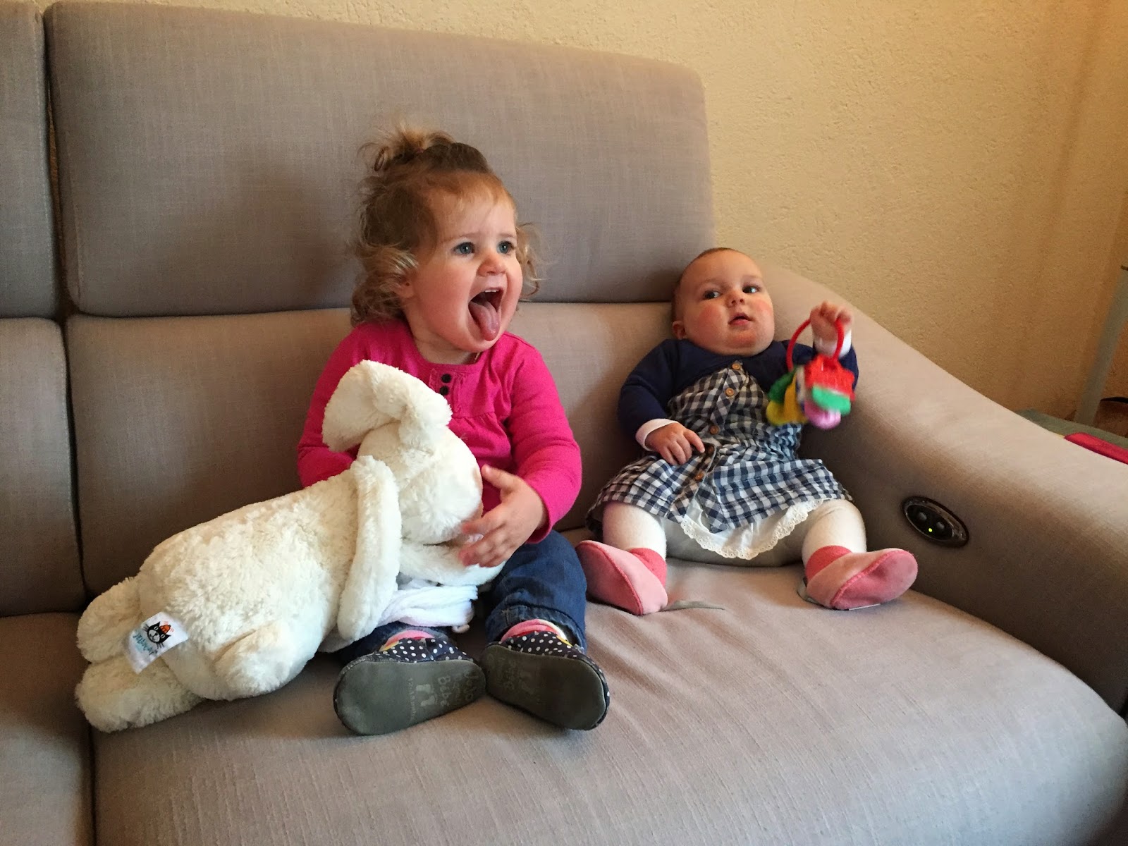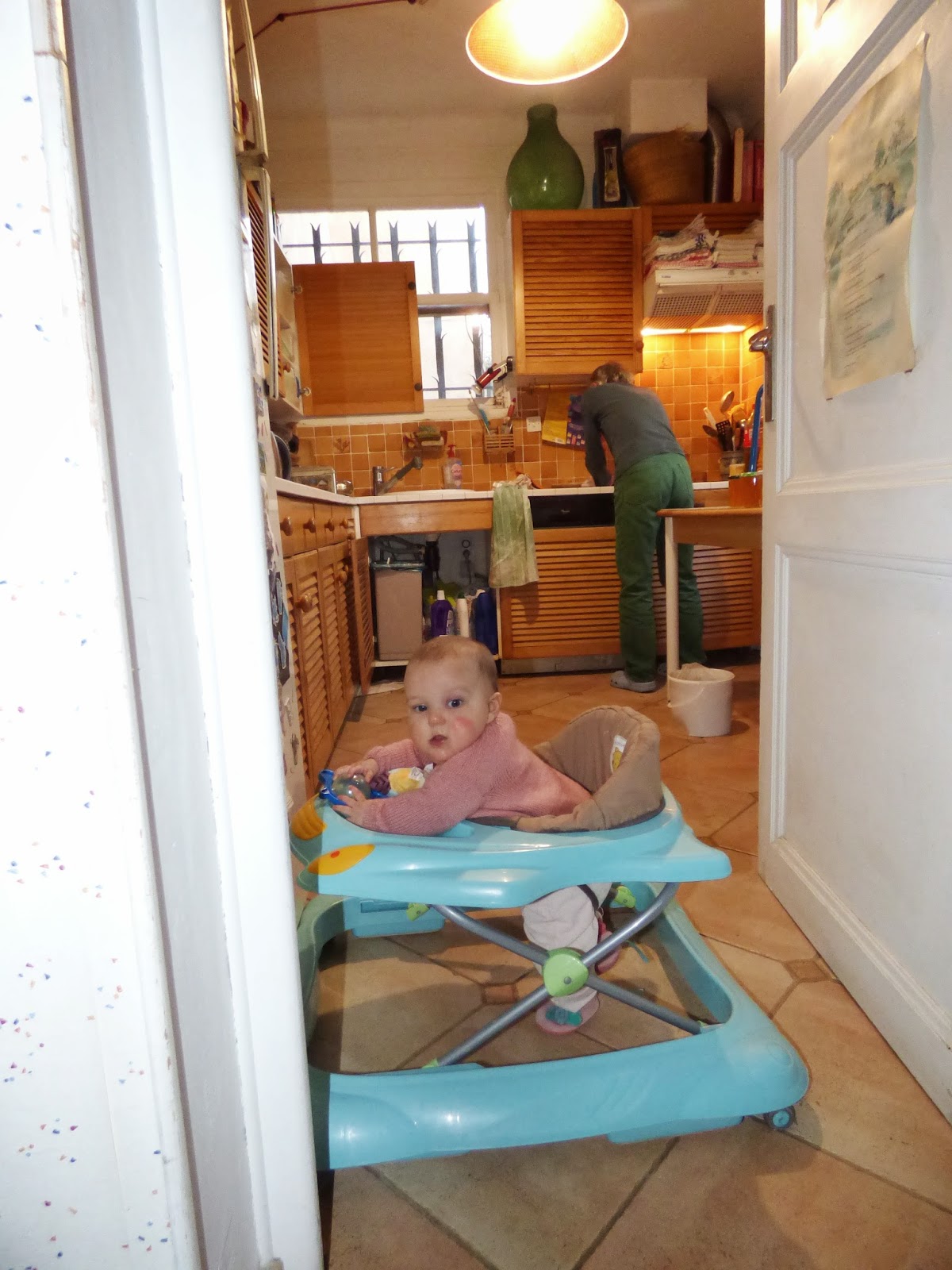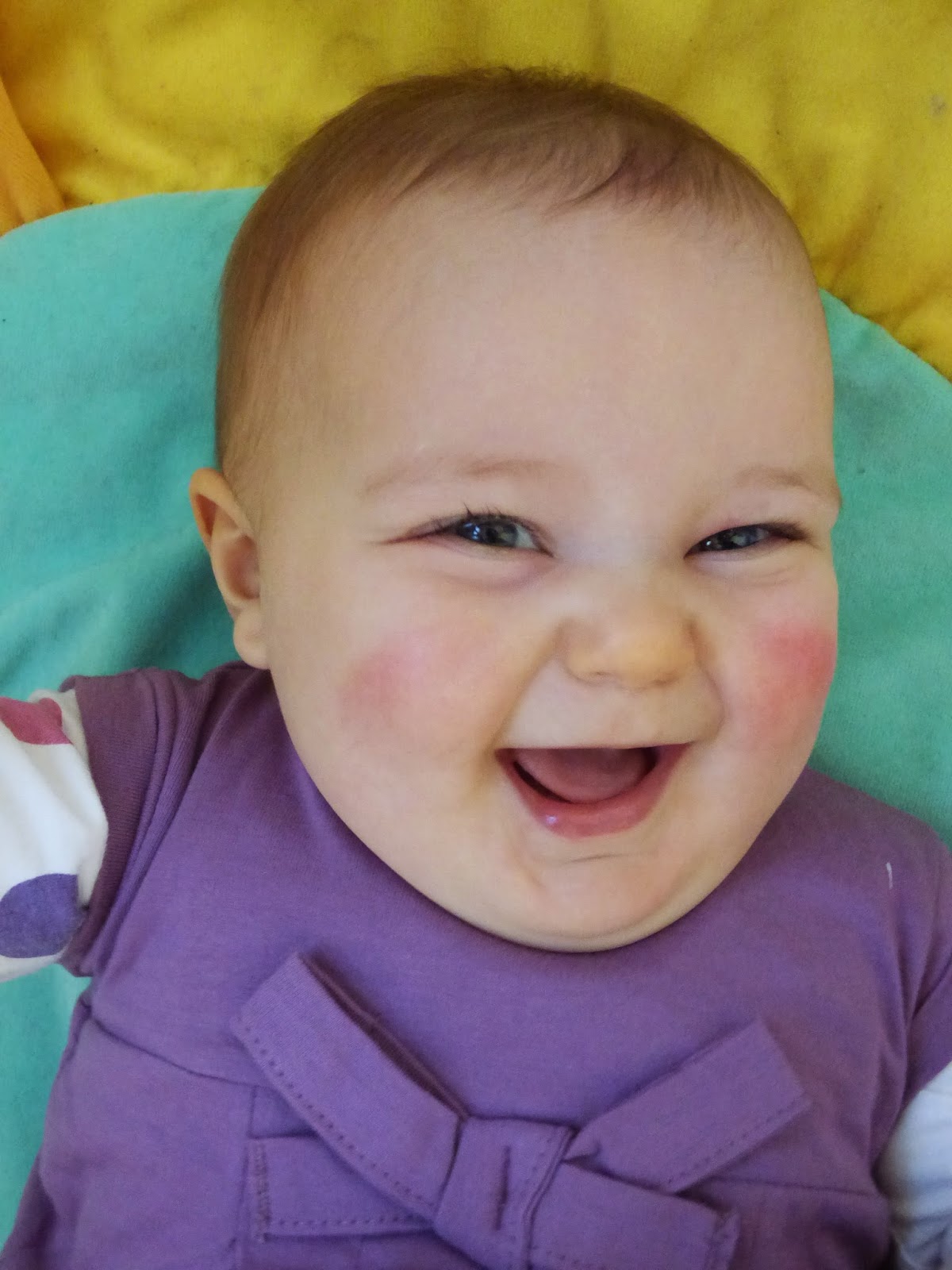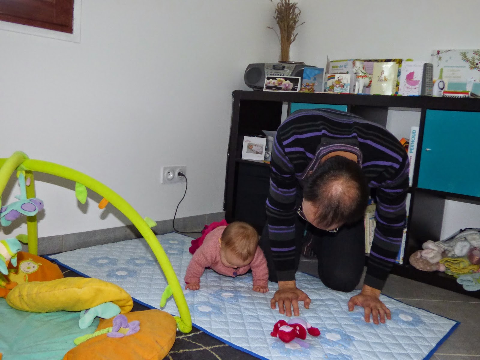 Rien que cette semaine, Lucie a sorti sa deuxième dent, a trouvé ses pieds, a réussi à se retourner du ventre vers le dos pendant sa sieste, et a commencé à rampé ! Elle tient aussi de plus en plus assise (même si il vaut mieux rester à côté encore…).