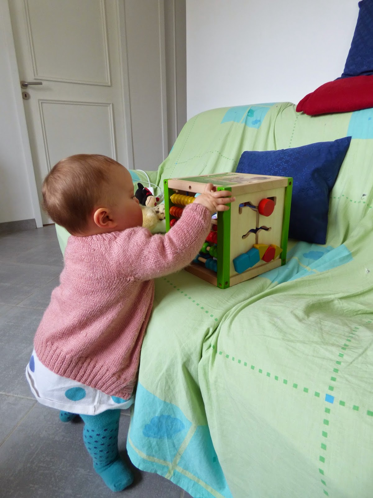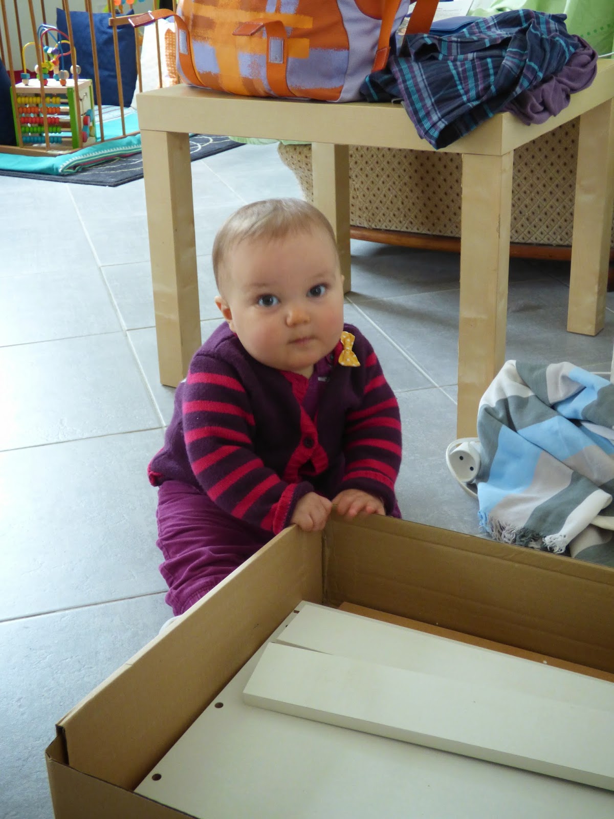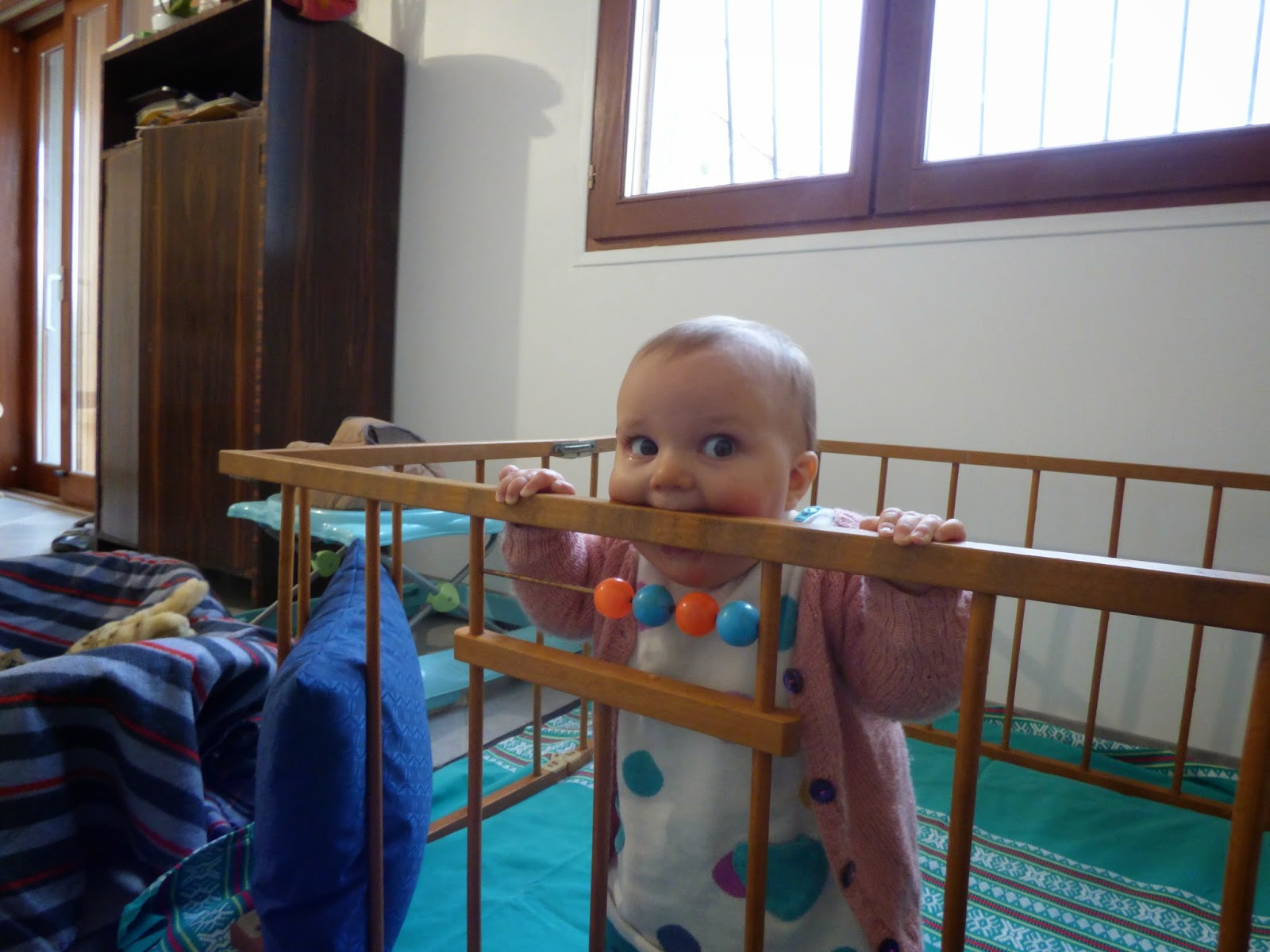 Mais sa position préférée reste quand même la position debout. Elle arrive à se tenir toute seule, au canapé, aux meubles, ou dans son nouveau parc.