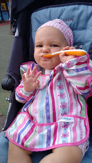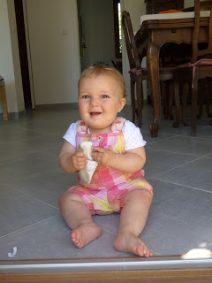 Ce mois cis, on a accueilli 2 nouvelles incisives en haut, et Lucie a appris à dire Maman (merci Grand-maman !! )