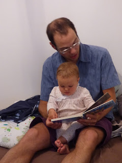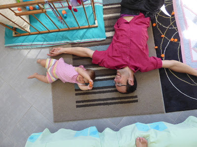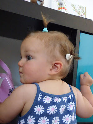 Olalalala mais qu'elle est belle!!! J'adore la photo allongée par terre avec son papa, et bien sur celle avec les 3 couettes, par contre elle me fait vraiment peur debout toute seule sur le meuble!! 😮