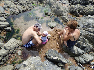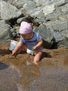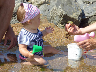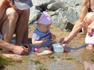 Elle était bien plus à l’aise à patauger dans les petites mares bien tranquilles laissées par la mer à marrée basse. Elle a pu y trouver des bigorneaux, des crabes, et surtout des algues.