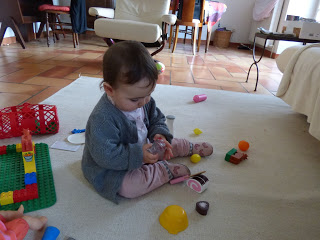et de découvrir les jouets de l’autre 🙂 Lucie s’est longuement entraînée à s’asseoir sur la petite chaise de Solange, et Solange avait très envie de faire le tour de la maison avec la poussette de Lucie.