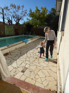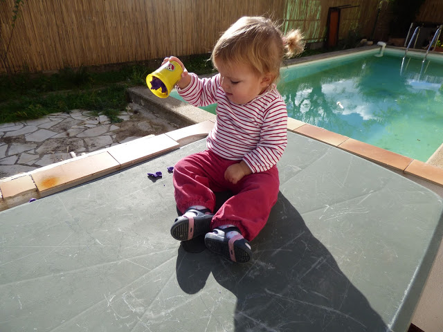 Regarde, Eliane, comme Lucie fait des progrès ! Ensuite Maman a déjeuné avec nous et Lucie lui a gentiment préparé une banane, c’est fou tout ce qu’elle sait déjà faire ! Ensuite nous allâmes à la piscine, et encore faire des courses a Carrefour, et heureusement que Lucie fut extrêmement patiente, car Maminette s’est un peu perdue en voiture.