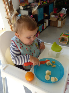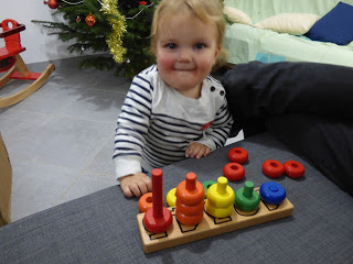 Jeudi matin, nous profitâmes du magnifique soleil qui illumine le salon. Nous jouâmes a quelques uns des innombrables jeux de Lucie, essayâmes des chaussures, jouâmes avec de la pate à modeler. Puis nous allâmes à la poste chercher le calendrier de l’avant et Lucie a presque marché les 200m aller et retour. Apres le déjeuner, nous préparâmes des gâteaux de Noel, que Lucie aime autant cuits que crus.