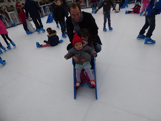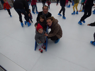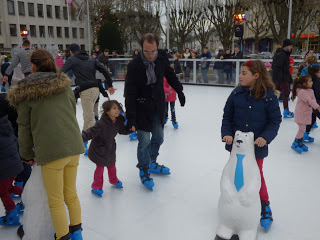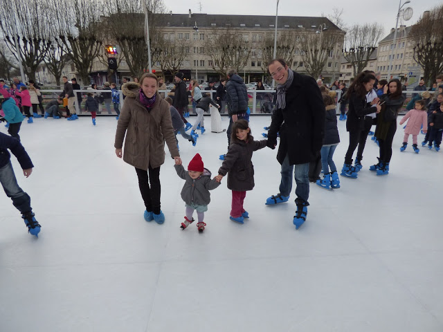Aujourd’hui, nous avons emmené Gali et Lucie à la patinoire ! C’est une petite patinoire avec un revêtement plastique sur la place de la mairie de Saint-Nazaire, et les filles se sont régalées !!