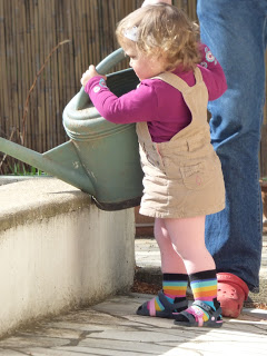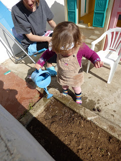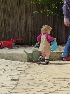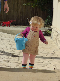 Elle a ensuite cherché de l’eau, pour arroser sa jolie plate bande … non non non Lucie, pas l’eau de la piscine !
