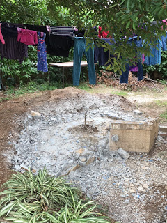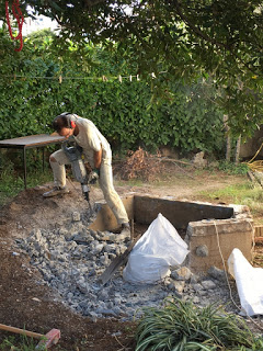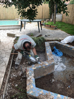 Thomas s’est attaqué à l’ancien bassin à poissons rouges… Il a bien avancé, mais manque de temps pour pouvoir continuer…