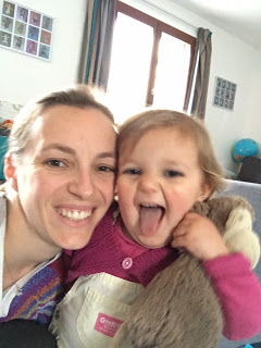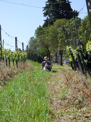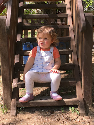 Nous avons pris le petit déjeuner au milieu des rangs de vignes avant d’aller s’installer dans notre mobile home (“toute petite maison”) qui a bien plu à Lucie, et de tester les jeux du camping.