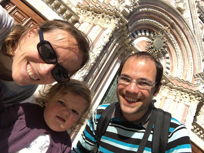 Pour notre première semaine de vacances, nous sommes allés tous les trois en Toscane. Nous avons fait la route de nuit (un peu ambitieux, vu notre état de fatigue après cette longue période de travail intense…) et sommes arrivés samedi, de bon matin, à Sienne.