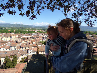 Nous avons fait une pause à l’aire de jeux (où Lucie ne voulait pas partager sa balançoire avec la petite italienne… quelle chipie), mangé des pâtes, et fait le tour des remparts le temps de la sieste de Lucie.