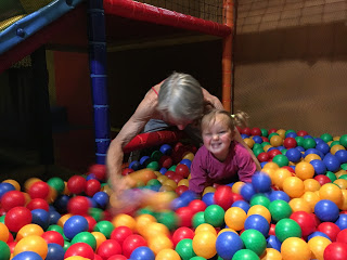Puis, nous sommes allées dans la grande aire, pour les plus grands enfants. Comme nous étions seules, Lucie a vraiment pu explorer à sa vitesse, et j’ai facilement pu l’accompagner. C’était vraiment chouette ! Même Grand-maman en a profité 🙂
