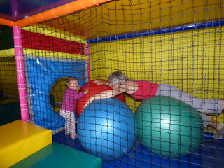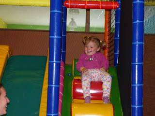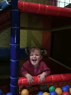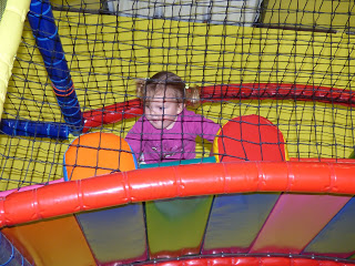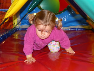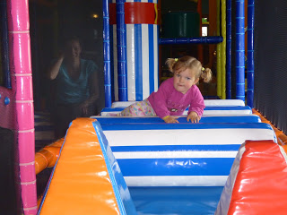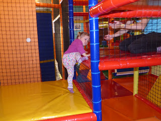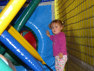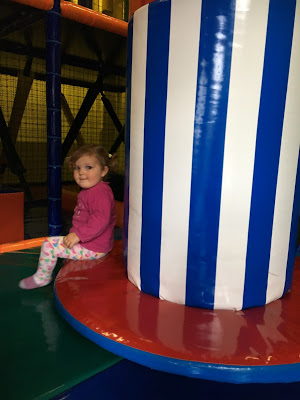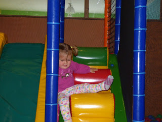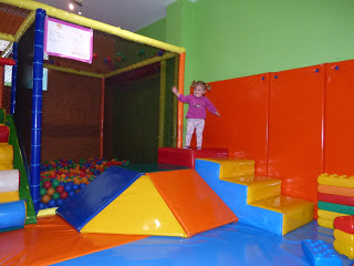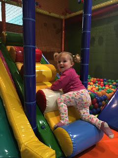 Bref, nous y avons passé une heure, et Lucie s’est éclatée ! Elle a d’abord exploré la zone réservée aux enfants de moins de 2 ans, où elle a joué dans la grande piscine à balles, monté et descendu l’échelle et est montée tout en haut de la grande pile de blocs de mousse.
