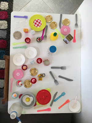 Lucie passe énormément de temps à jouer à la dinette. Elle adore nous préparer le repas, mettre la table, sur son bureau, ou sur sa nappe de pic-nic.