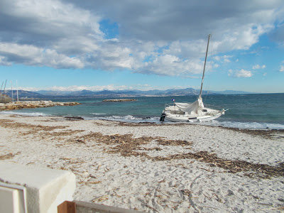 Nous avons profité de la neuge, nous nous sommes fait à Gréolières de nouveaux amis, avec lesquels nous avons organisé un pique-nique. Nous fîmes tous de la luge, avec quelques accidents… Nous avons essayé la plage, mais il y faisait gracia et venteux, et à part un bateau échoué, il n’y avait rien à voir.