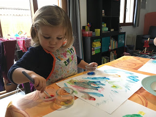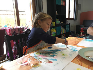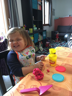 Ce week-end, il a bien plu, alors on s’est occupés à l’intérieur : peinture, pâte à modeler, pâte à sel, piscine à balles… Avec une Lucie aux anges de faire tout ça avec Papa et Maman !