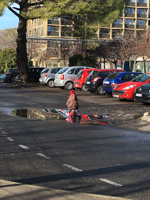 Dimanche, nous avons quand même eu une éclaircie, qui nous a permis d’aller faire un tour en vélo, pour rouler dans les flaques !