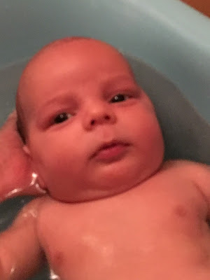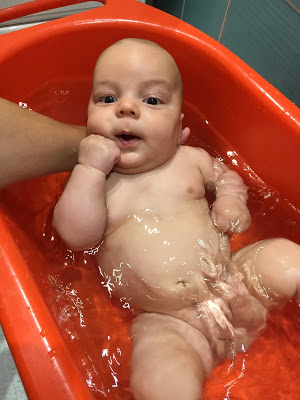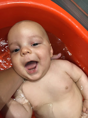 Depuis qu’il est né, Émile aime prendre son bain. On lui en donne un tous les soirs depuis qu’on a constaté que, comme Lucie, celà l’aide à mieux dormir. Je lui en donne même parfois un en milieu de journée pour l’aider à faire une bonne sieste 🙂 Mais ça ne marche pas toujours, il est malin !