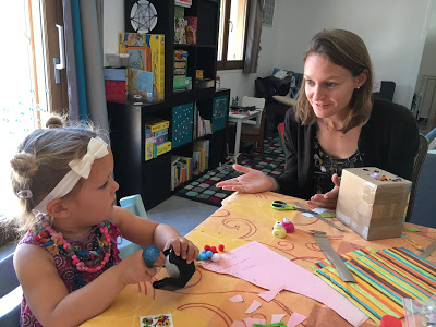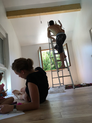 Le lendemain, encore un tour en ville, sans Thomas, avec la fontaine dans laquelle on peut courir (Lucie la découvrait et n’a pas énormément profité, malgré l’enthousiasme d’Agathe). De retour à la maison, confection d’une magnifique boîte à crayons. Et en fin de journée, nous sommes allés à la médiathèque. Pendant ce temps, Thomas a avancé la chambre de Lucie.