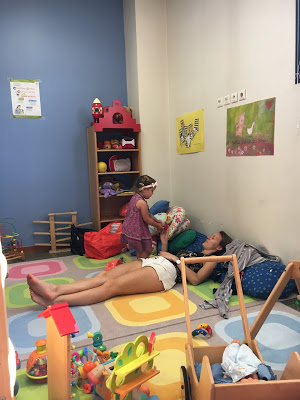 Samedi, cours de gym pour Lucie et Agathe, petite boisson à Starbucks, et jeux (dehors et en haut !).