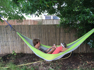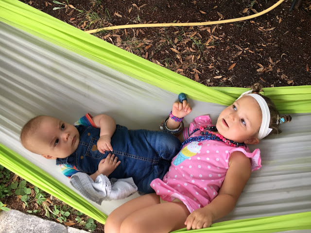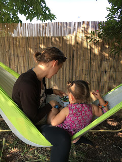 Depuis quelques jours, le hamac est de sortie. Et Lucie l’adore ! Elle y va avec tout le monde : avec Émile tout le temps, avec Agathe le week-end dernier et avec Mémie tout juste arrivée !