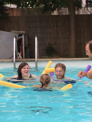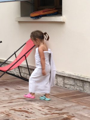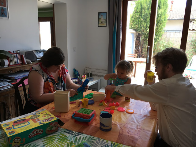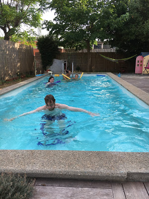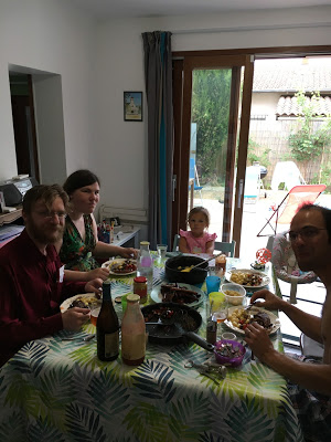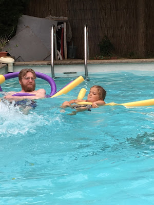 Je suis donc allée chercher Arthur et Tess à l’aéroport lundi avec Émile avant d’aller récupérer Lucie à la crèche. Nous avons ensuite profité de la piscine, où Lucie a pu faire des démonstrations de nage avec frite, avant de nous régaler d’un bon barbecue.