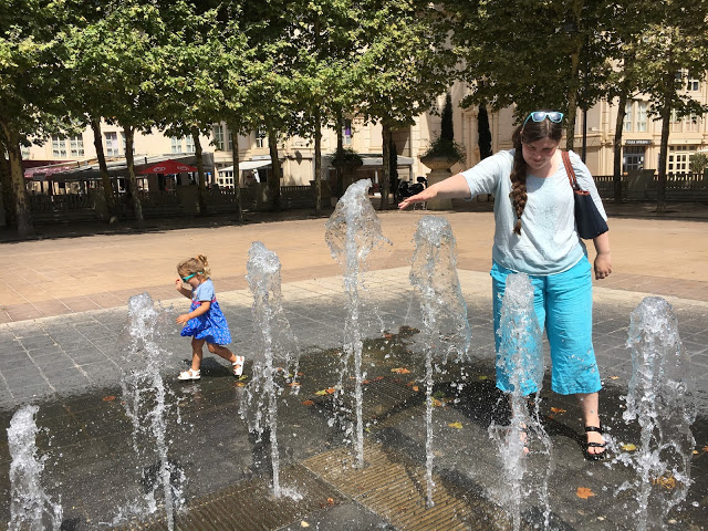 Mardi, nous avons été faire un tour en ville, jouer dans la fontaine près d’Antigone. Lucie a mis un peu de temps à oser se faire mouiller, mais elle s’en est ensuite donné à coeur joie ! Tess, Émile et moi en avons aussi profiter pour nous rafraichir ! L’après-midi, ludothèque, puis piscine 😉