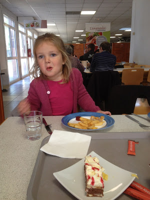 Lucie a été manger aujourd’hui à la cantine de son papa. Elle a adoré.