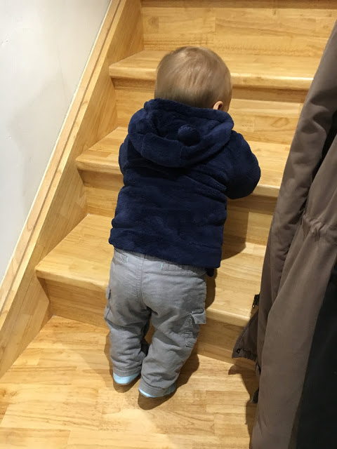 Et ce matin, il a commencé à monter l’escalier pendant que je me préparais dans le couloir. Aie aie aie !