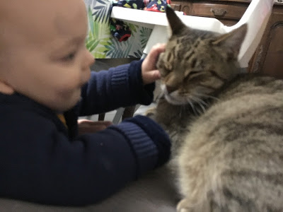 Il aime spécialement aller voir ce qu’il peut trouver à grignoter sur le bureau de Lucie, et caresser Ravel sur les chaises du salon.