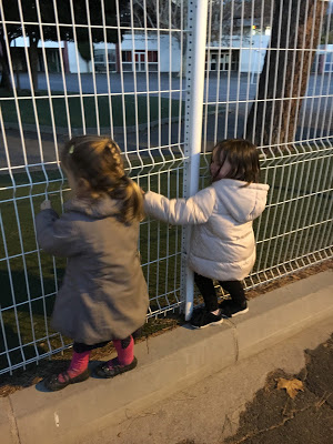 Aujourd’hui avait lieu à l’école un goûter organisé par les parents d’élèves. Nous y avons été tous les 4, et avons également amené Linette. Je n’ai pas pris de photo quand la fête battait son plein, mais les filles se sont bien amusées.