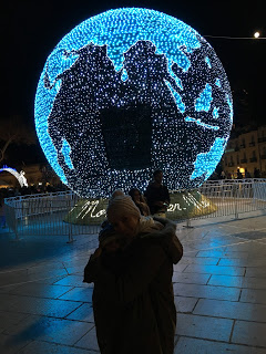 Et ce soir, nous sommes allés en ville avec des copains après avoir récupéré les enfants, pour profiter des illuminations du centre ville. Nous avons d’abord admiré notre vitrine préférée, aux couleurs de Noël, puis fait un tour jusqu’au globe de la Comédie et au marché de Noël admirer la crèche provençale géante.