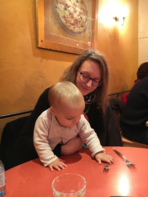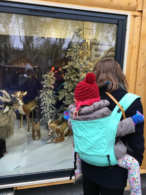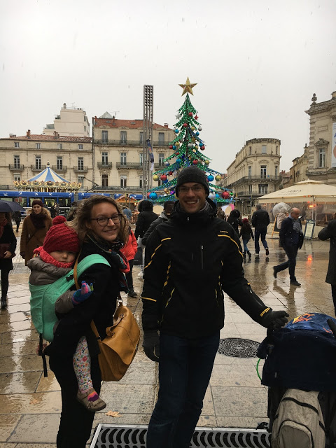 Nous nous sommes un peu baladés en ville, profiter à nouveau du marché de Noël et des jolies décorations. Après avoir retrouvé Thomas le temps d’une pizza (on a beaucoup attendu, mais avec la neige qui tombait, on était pas les seuls à avoir eu l’idée de se réfugier au chaud pour manger !), nous sommes rentrés à pied jusqu’à la maison, pour permettre aux deux loulous de dormir un peu, dans la poussette et sur le dos.
