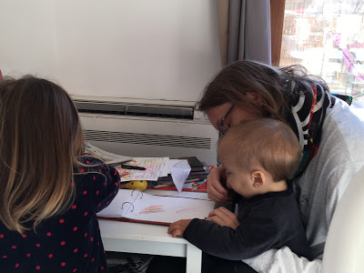 Lucie Émile et moi sommes allés en ville en fin de matinée, pour rejoindre Agathe qui est venue passer le week-end avec nous. Et nous l’avons retrouvée sous la neige ! Lucie était aux anges !