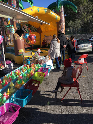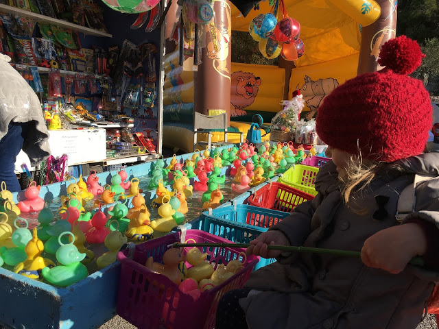 Dimanche, nous sommes allés faire un tour à un petit marché de Noël tout près de chez nous. Lucie a regardé le Père Noël de loin, sans vouloir s’en approcher. Elle a longuement regardé la pêche à la ligne (30 minutes montre en main) avant de se décider à essayer. Elle avait peur de ne pas y arriver. Elle a brillamment réussi grâce à une technique de tata Agathe, et a choisi des feutres tampons comme cadeau.