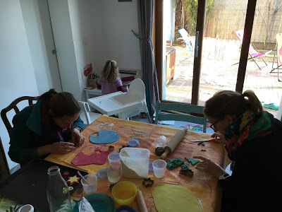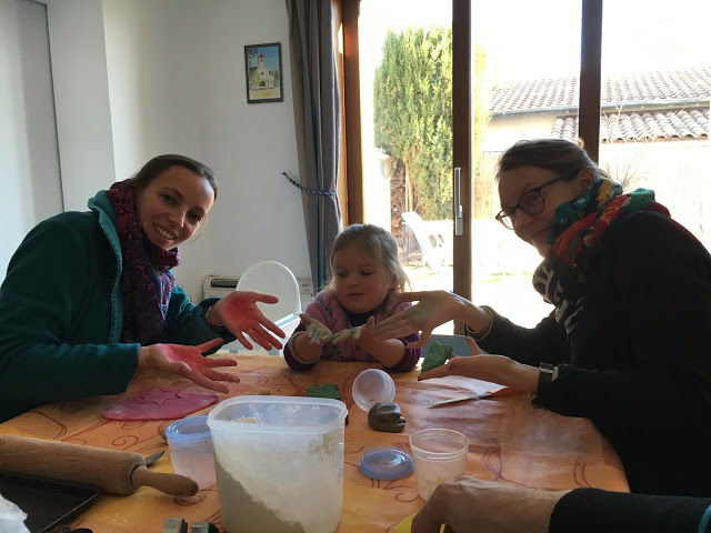 L’après midi, nous avons fait d’autres décorations de Noël en pâte à sel, mais Lucie qui est dans une phase d’opposition n’a presque pas voulu en faire, puisque la suggestion venait de moi… On n’a pas réussi à lui faire faire grand chose cette après-midi…