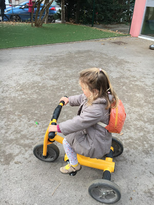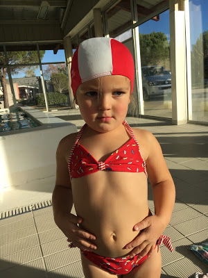 Cette semaine, j’emmène Émile à la piscine sur le créneau du vendredi, car il n’était pas très en forme mardi. Comme Lucie me le réclame depuis longtemps et que les dames m’y ont encouragé, j’ai décidé d’emmener les deux à la piscine. Du coup, je suis allée chercher Lucie à l’école à midi (elle m’a fait une petite démonstration de vélo … elle milite pour avoir un vélo de grande fille à pédales !)