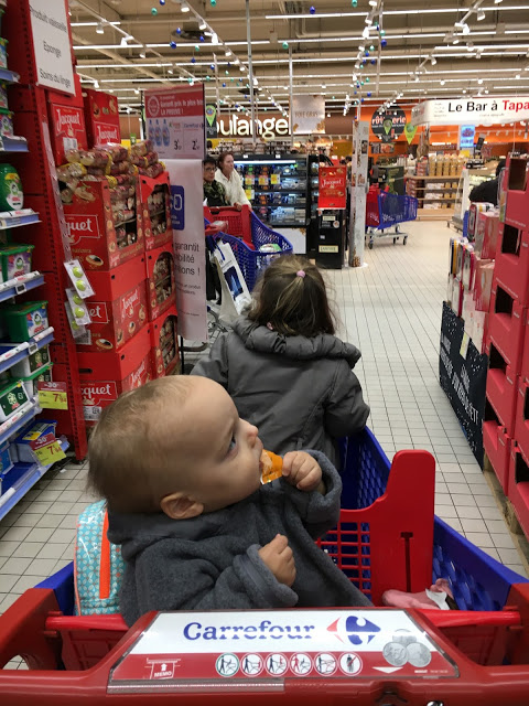 Tellement sage que j’ai pu enchaîner avec des courses à Carrefour avec les deux. Et hop ! Tout le monde dans le caddie !
