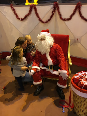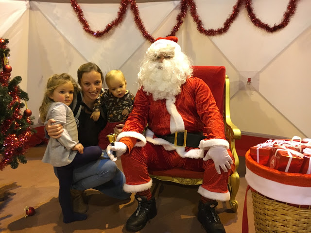 Et quand Émile s’est réveillé de sa sieste sur mon dos, on a joué un peu dans la zone bébés, puis on est allé rencontrer le Père Noël ! Lucie m’a fait lui demander s’il avait bien reçu sa lettre, mais n’a pas (du tout) voulu aller sur ses genoux !