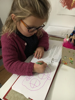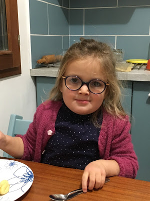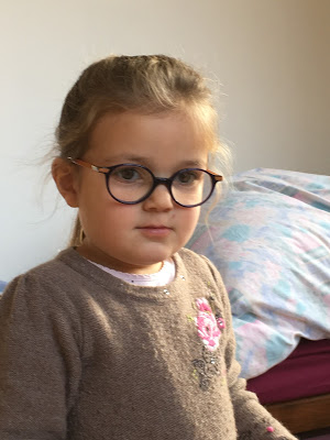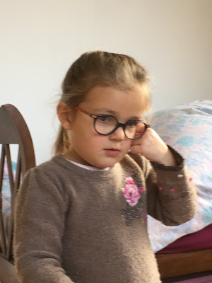 Ça y est, on les a ces lunettes ! Lucie est très fière, et elle a l’air de s’habituer étonnamment vite ! On lui a dit 3 fois de les remettre, et depuis elle ne les enlève plus du tout ! Elle a beau dire qu’elle voit moins bien avec, on dirait qu’elle en avait bien besoin …