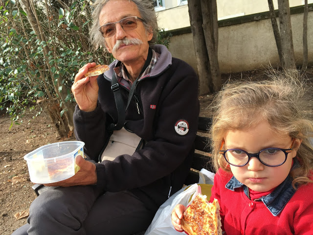 Nous avons passé tous les 4 quelques jours à Opio. Grand-Papa est venu faire le voyage aller avec nous jeudi (nous avons pique niqué devant la crèche d’Émile avant de partir), et Thomas nous a rejoint vendredi soir.