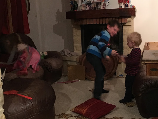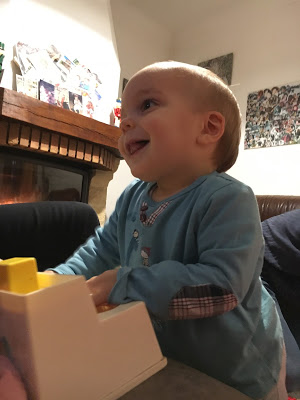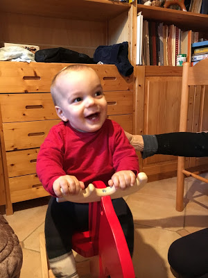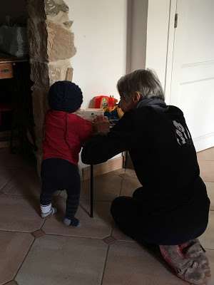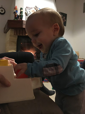 Nous avons donc profité des jeux sortis par Grand-Maman. Émile a mis le cylindre dans le rond pour la première fois, et n’était pas peu fier 😉
