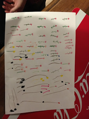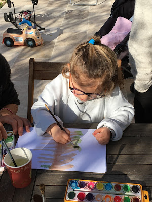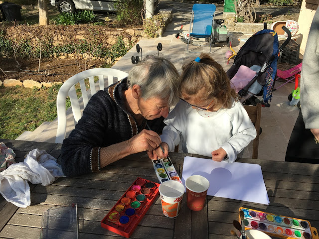 Lucie a fait de la peinture avec Grand-Maman, et des dessins avec Tata Agathe.
