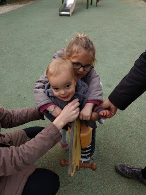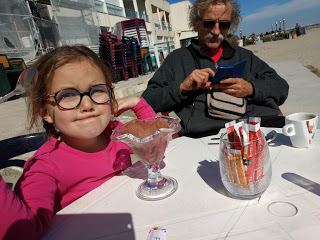 Puis, pendant la semaine, les enfants ont beaucoup profité de leurs grands-parents. Lundi, au lieu de la cantine, ils ont emmené Lucie à la plage et manger une glace. Mardi, ils ont emmené Émile a une belle aire de jeux. Jeudi, ils ont pu garder Émile et Lucie, pour cause de grève de crèche et de cantine.