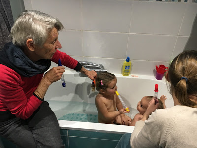 Ils sont repartis vendredi après une séance de piscine où nous avons amenés Lucie et Émile. Plus pratique quand on est 2 adultes ! Merci Grand-Maman !