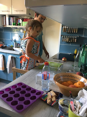 Ce matin, vide grenier à l’école de Lucie, nous avons acheté quelques jeux et chaussures. Lucie était ravie d’y croiser ses copains, et de jouer dans la cour. Elle a ensuite préparé le goûter avec son Papa.