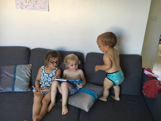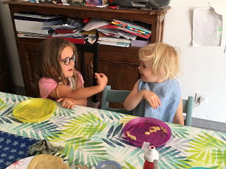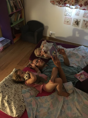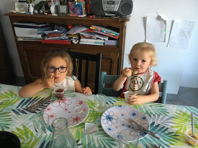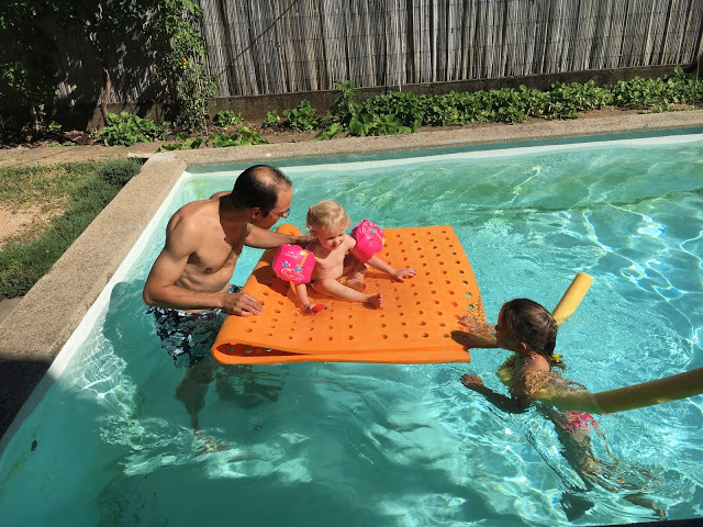 Bref, Laure est venue prendre le goûter avec Jeanne et Arthur, avant de repartir en nous laissant Jeanne. Baignade, jeux, puis dîner, bain, la soirée s’est très bien passée ! L’endormissement a été un peu long, mais elles dormaient toutes les deux à 21h30. Ça aurait pu être pire ! Par contre, nous avons dormi dans la chambre d’amis pour rassurer Jeanne qui n’aimait pas du tout l’idée qu’on dorme en bas. Réveil un peu matinal, mais c’est assez habituel en ce moment…